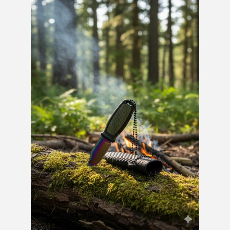 این چاقوی کوچک و سبک با طراحی مدرن و تیغهی رنگینکمانی، یک ابزار کاربردی و در عین حال زیبا برای استفاده روزمره و طبیعتگردی سبک محسوب میشود. بدنه و دسته از پلیمر مقاوم با بافتدار طراحی شده تا هنگام استفاده، ضدلغزش و خوشدست باشد.