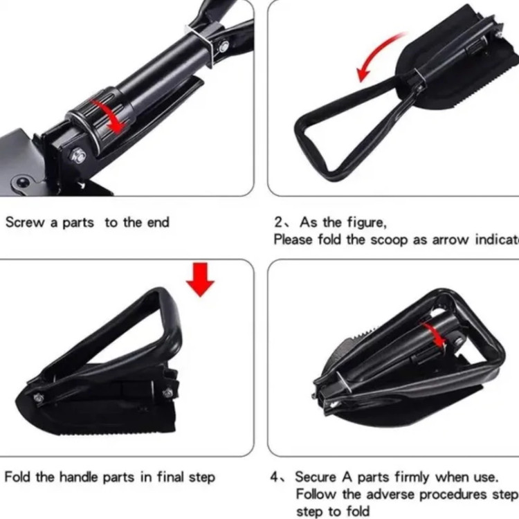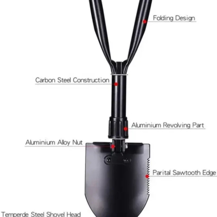 عملکرد: بیل ، اره و کیف قابل حمل بر روی کمربند.