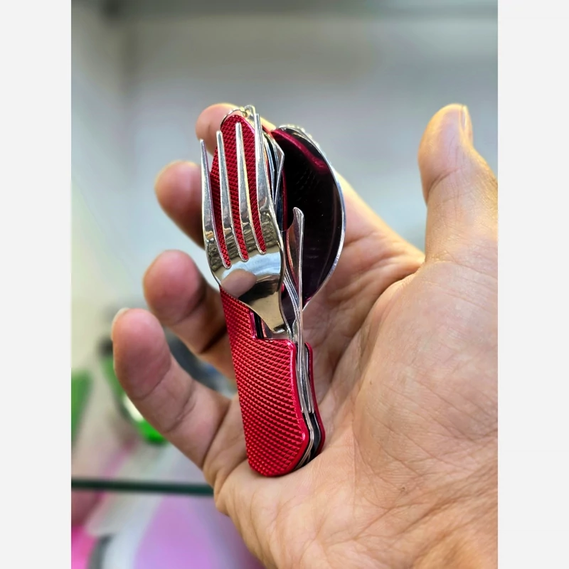 .قاشق چنگال چندکاره تاشو، یکی از کاربردیترین ابزارهای سفر و کمپینگ است. این ابزار همهکاره شامل قاشق، چنگال، چاقو و درب بازکن بوده و بهراحتی در جیب یا کولهپشتی جا میگیرد. طراحی تاشو و جمعوجور آن باعث میشود بدون اشغال فضای زیاد، همیشه آماده استفاده باشد.