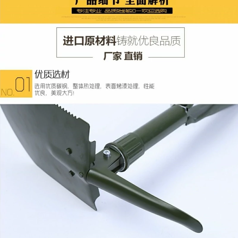 عملکرد: بیل ، اره و کیف قابل حمل بر روی کمربند.
