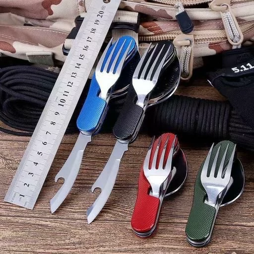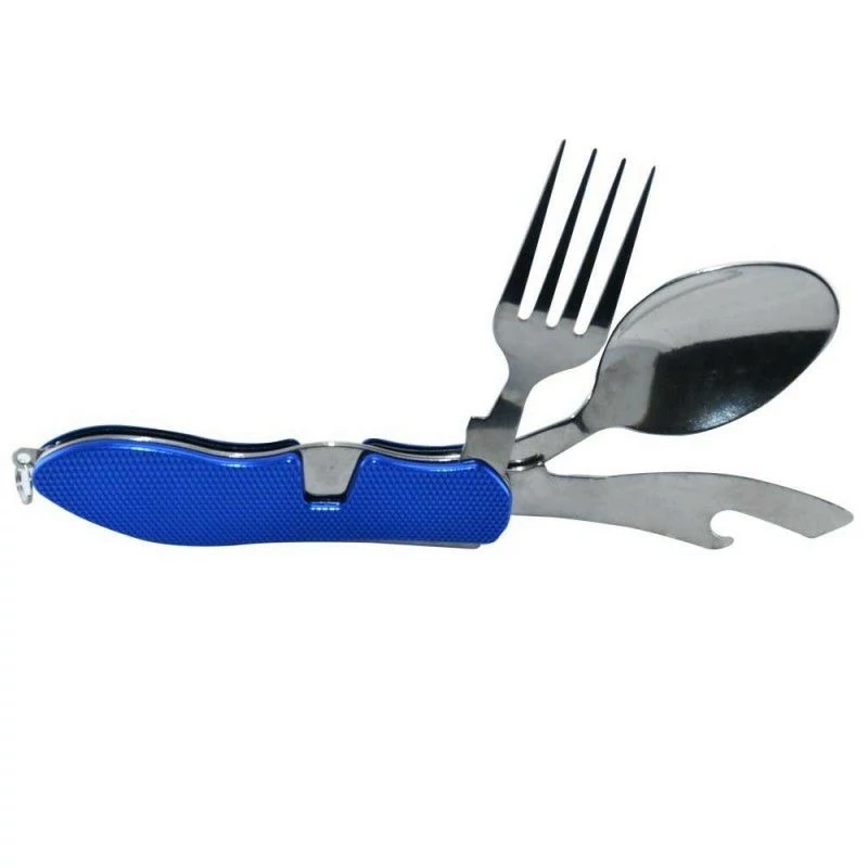 دارای یک قاشق و چنگال با یک قوطی باز کن،که از لبه قوطی بازکن نیز به دلیل تیز بودنش میتوان به عنوان چاقو استفاده کرد.در انتهای این ست حلقه آویزی وجو دارد برای نصب راحت به کوله پشتی،کیف و ...از این ست میتوان در کوهنوردی،مسافرت،کمپینگ استفاده کرد