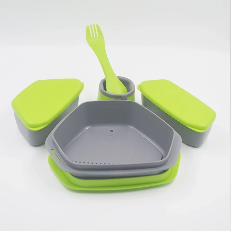 یک عدد ظرف شش ضلعی درب دار با حجم یک لیتر و درب به عنوان بشقاب با حجم 500 ml – دو کاره